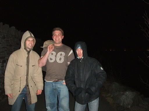 At about midnight, 4 of us decided to head back and, as is traditional on these weekends, decided to walk back instead of get a taxi. The walk back takes about 50 minutes, half of which is spent crossing the Cob, one of those roadway-across-the-mouth-of-a-bay things. On Friday night this was incredibly exposed as the cold wind blew down off the snowy mountains to the east. Do not let the guy in the middle fool you – he is just showing off. It is frelling freezing at this point.