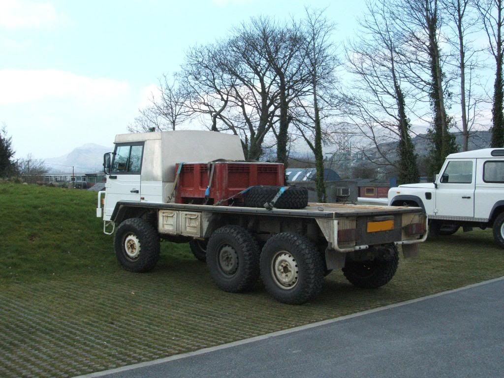 This is a Pinzgauer, a military truck, and one of these always gets brought by a guy who works for them and is using the long-distance trips to road-test the vehicles. They’re pretty cool, anyway, and we raced this one pretty much all the way from Shrewsbury to Knockin (home of the Knockin Shop, groan). On the way over we all stopped for a pint and a discussion of how people were tempted to take up smoking just so that they could smoke in a pub before it got banned. We then proceeded over the higher roads to Bala and on to Blaenau, which meant we were driving through countryside covered in snow…but sadly I was having to concentrate too hard on not being travelsick in the back as we went into hairpins at 50mph to take any photos. We lost the truck behind us at this point as, as we later found out, they’d found themselves going round a corner sideways and decided to drop the speed just a tad.
