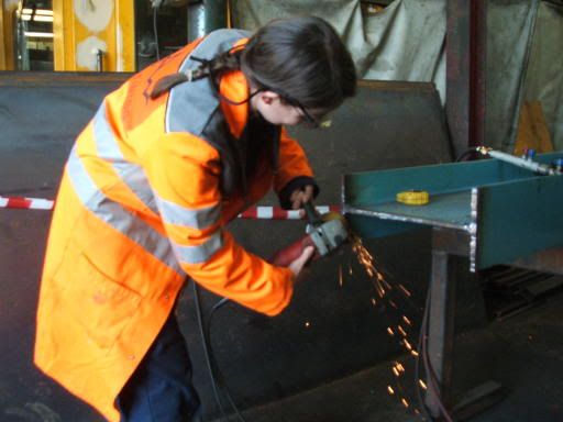 So anyway, jobs included drilling holes in the concrete and bolting the stanchions into them, climbing up ladders to tighten nuts & bolts in fishplates, oh and of course grinding. Bad photo but ee – sparks. Which don’t seem to some out too well in photos – there were a lot more of them in real life. Also, isn’t my long-tailed hi-vi dinner jacket thing just the best fashion accessory ever?
