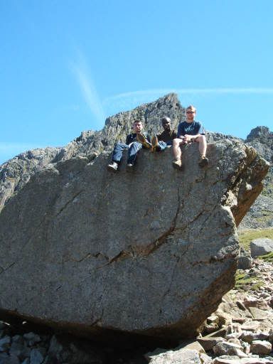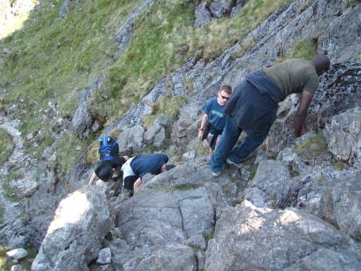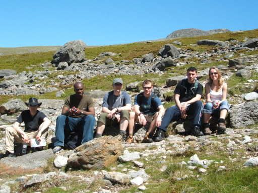 All bar one of the rest of us decided to go along for the journey. (Sam, the other one, had hurt her ankles and decided to bow out and spend the day walking by the lake - definitely a wise decision on her part, as you will see later.) It should be noted that in our party we had two fairly fit people who go hill-walking a lot, Mark and Andy...3 amateur hill-walkers who were somewhat unfit, me and Elle and Joe...and 2 people who are city boys through and through and had never climbed a hill before in their lives, Pete and Isaac.