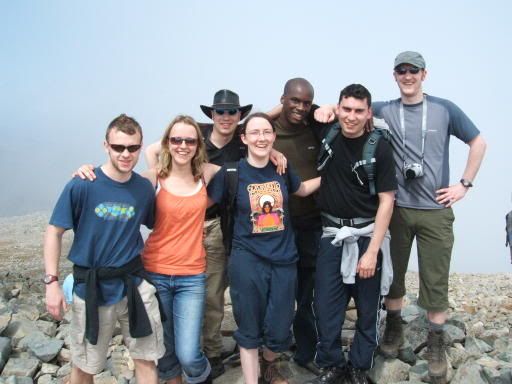 So woohoo! It took us 3 hours, but we made it. Here is us lost in the mist on top (and damn them, they insisted I was in this one, and look at the stupid face I pulled). Okay, so for ease of reference: L to R is Andy, Elle, Joe, me, Isaac, Pete and Mark.