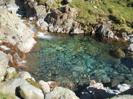 I have of course forgotten to mention that even halfway up we had pretty much run out of water (thanks to leaving half of it behind). I filled my bottles up from a beautifully clear little stream (no comments about dead sheep, please, if I'm going to catch things from river water then I caught them years ago and anyway it was cold and delicious).