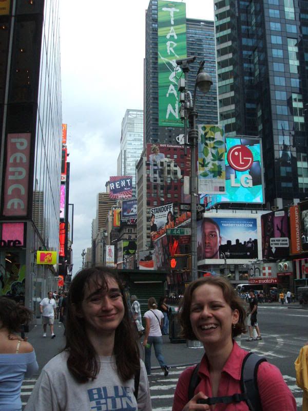 The first 24 hours, for me, consisted purely of travelling, biped and a very tiny amount of sleep. They were enjoyable, though – I have no idea what we nattered about on the plane now but remember having a good time at the time. Waking biped up purely to point out barren terrain was particularly satisfying. Unfortunately I also allergied severely to something on the plane and emerged blinking and sneezing at JFK. We then took an excessively long time to reach the apartment, where we found Em already waiting for us, with the apartment owner having abandoned hope (and the keys) hours earlier. The evening was spent jumping on beds, ordering massive pizza, watching a little VM2, investigating the scary corner shop, spilling beer…and all that before anyone else even turned up. Q, Keppet and Amy arrived together…and I have no idea what the 6 of us did then really. Allocated beds I guess…and most people went to bed pretty early. Kepp and I stayed up to let daisy in at 1, and then all was sleep (or snoring) on the