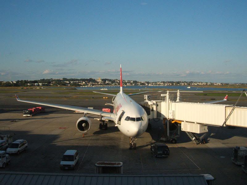 And then we said our farewells to American soil and caught the bus to the airport. This isn't our plane, but this has got to be the best view from a departure lounge I've ever seen. Very nice.