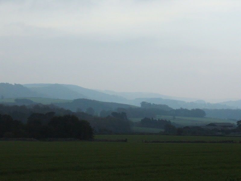As we walked back, dusk was falling, and the landscape was...very Derbyshire. Not the high peak, not the dramatic stuff, but mistily elusive and rolling. I can see Mr Darcy riding his horsie through these fields and woods.