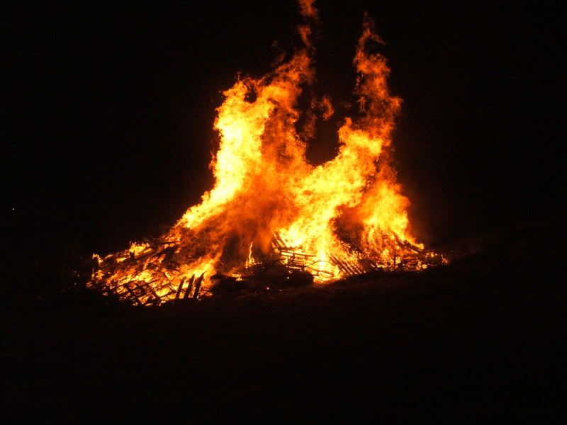 This Saturday was also the fifth of November, so in the evening we got in my car and I drove us to Eyam to see their bonfire/fireworks. Eyam being 'the plague village,' they rather amusingly had not only a guy on the bonfire but also a wood-and-paper rat, which burned up rather well.