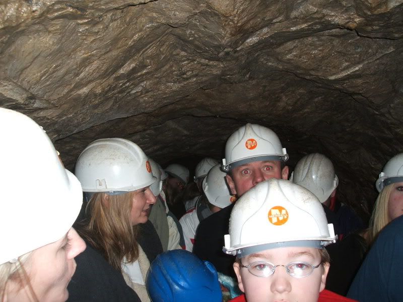 Then back in the boat and back along the tunnel, where tour guide ran out of fun facts to share. He suggested we sing, but was met with resounding silence. Well, never mind, he gets paid to bump his head all day. As we exited up the hundred-and-something steep stone steps that must have actually been the best part about working down that mine all day, we passed another group and tour guide coming down. "It's snowing!" said the tour guide. "Yeah right," said we.