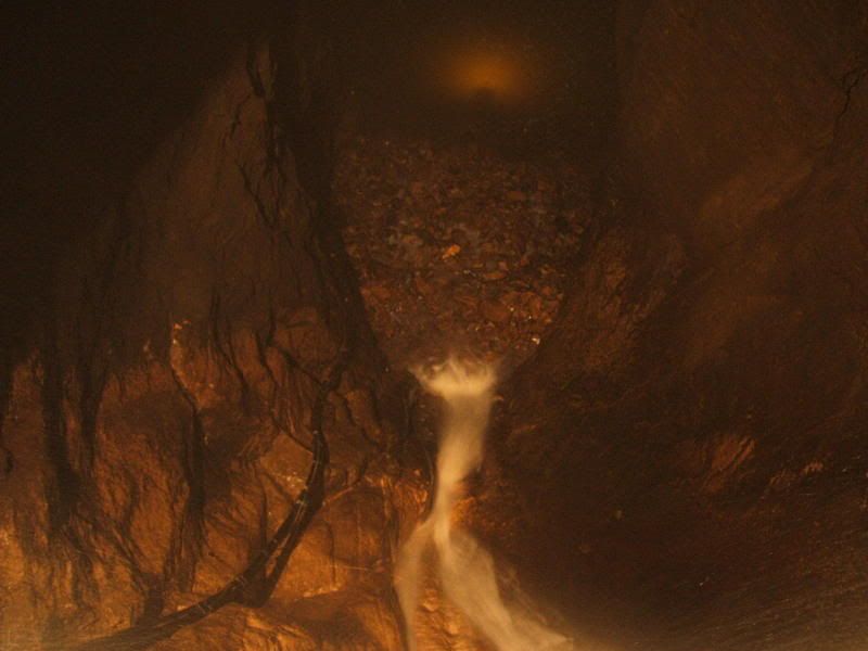 And so, after some more fun tunnel facts (eating tallow is Bad for you, children, as is blowing yourself up), we emerged into Speedwell cavern, which is what you're really paying the money to see I guess. Unfortunately, it's fairly low-lit, and too big for a flash to work, so my camera struggled a little. Here's the best I could manage of the cavern looking up: