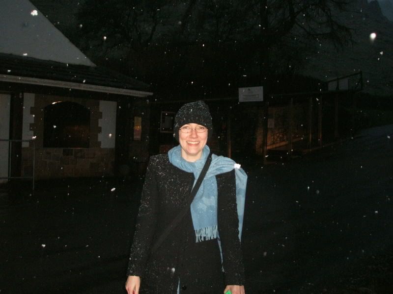 "Aaaah! Snooooow!!!" said Lauren and I, and proceeded to go crazy and jump around the car park laughing. Other tour members ushered their small children into their cars and drove away as fast as they could.
